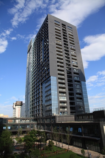 金域名都五期12#樓由主樓及地下室、沿街商業(yè)等組成,建筑總面積:59810.5平方米,其中地上51304.6平方米,地下8505.9平方米。其中商業(yè)建筑面積為8319.7平方米, 辦公建筑面積為42828.3平方米,主樓部分地面以上為28層,裙樓部分為地面以上為2層,建筑最大高度95.55m,裙樓高度12.8m。地下室2層,基礎(chǔ)埋深約7m,分別為人防區(qū)和非人防區(qū)。人防工程防護等級為二個甲類核六級、常六級二等人員掩蔽所,人防工程面積分別為1845平方米和1943平方米;一個物質(zhì)庫,人防工程面積分別為2725平方米;一個人防柴油移動電站。非人防區(qū)為地下車庫、庫房及設(shè)備用房。整個場區(qū)建筑群布置合理,高層建筑物為南北朝向,高度錯落有致;最大限度拓展景觀視野;采光、通風(fēng)良好。