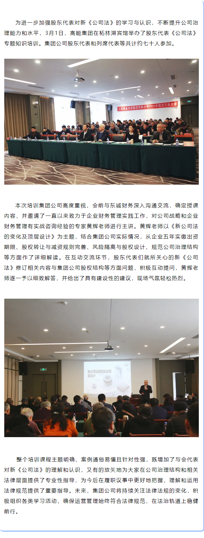 高能集團舉辦股東代表《公司法》專題知識培訓(xùn)