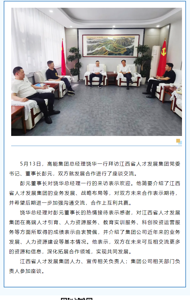 高能集團總經(jīng)理饒華一行拜訪江西省人才發(fā)展集團黨委書記、董事長彭元