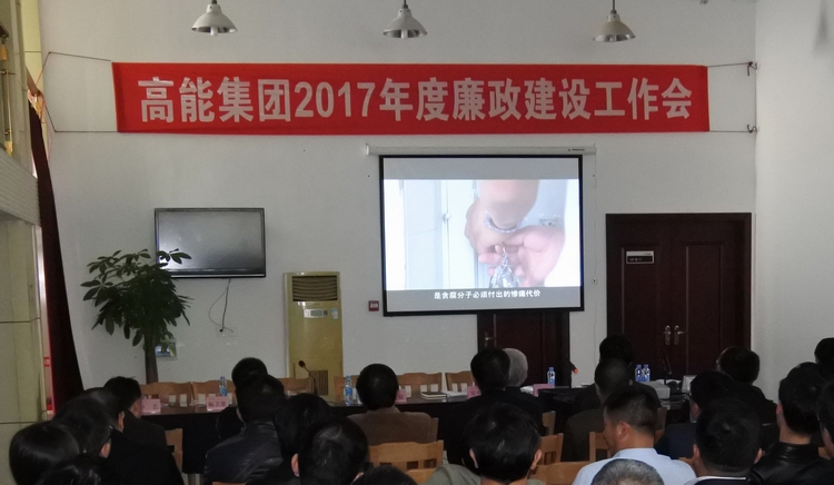 根據(jù)會議議程安排,首先組織與會代表觀看了以近年來江西省內查處的反腐典型案件為主要內容的《貪腐的代價》光盤;隨后由集團紀檢委員楊秀繁先生宣讀并發(fā)布了《高能集團公司管理人員廉潔從業(yè)守則》。