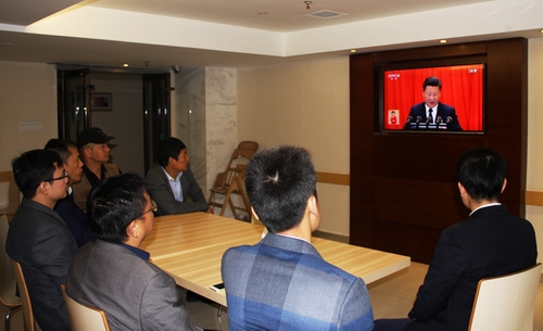 10月18日上午八點(diǎn)五十,高能黨總支第三黨支部組織全體黨員、員工集中收看黨的十九大開幕實況,部分監(jiān)理項目部在項目駐地觀看了黨的十九大開幕。