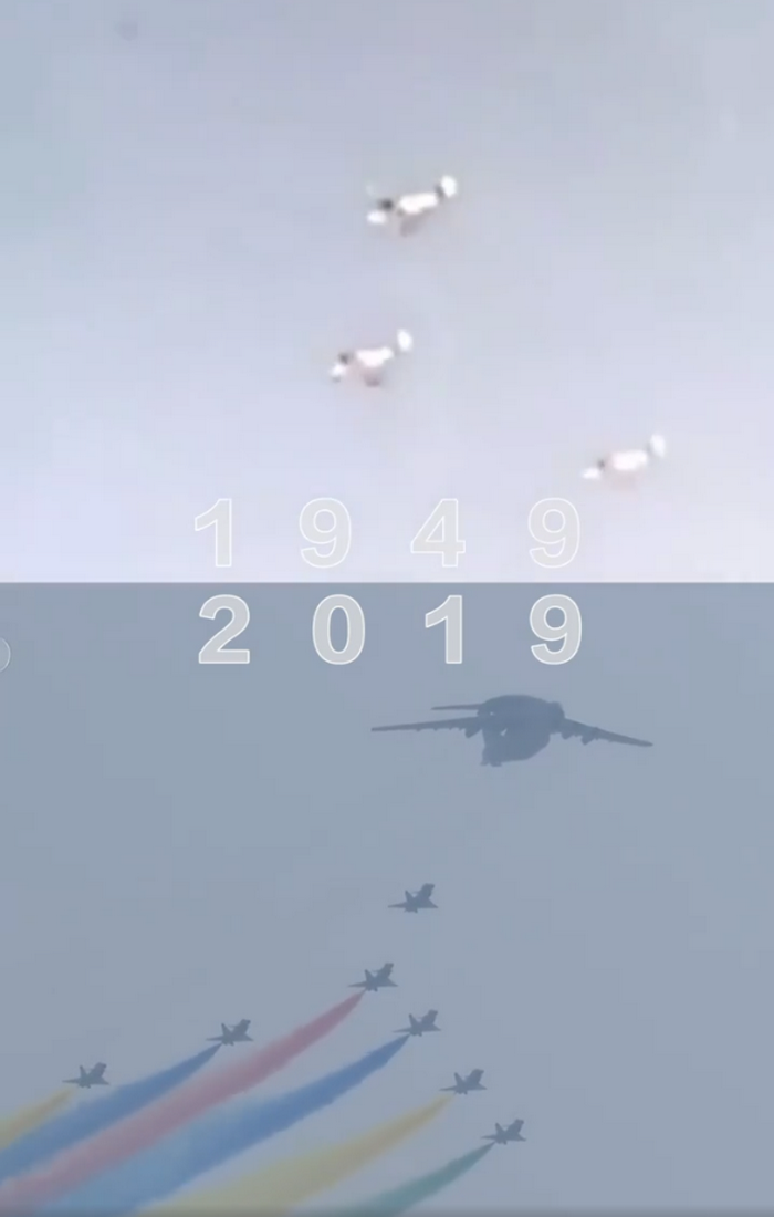 在中華人民共和國成立之初,我們匱乏的有矽和鎳,也有飛機,但是卻從沒匱乏過對祖國的熱愛之情。從1949到2019,從四萬萬到十四億,時間見證著祖國的成長與發(fā)展。國慶70周年閱兵上,20架直升機組成巨大的“70”字樣,象征著中華人民共和國走過的70年光輝歷程。從開國大典上僅有17架飛機,一些飛機需要飛兩次,到現(xiàn)在,飛機再也不用飛第二遍了。