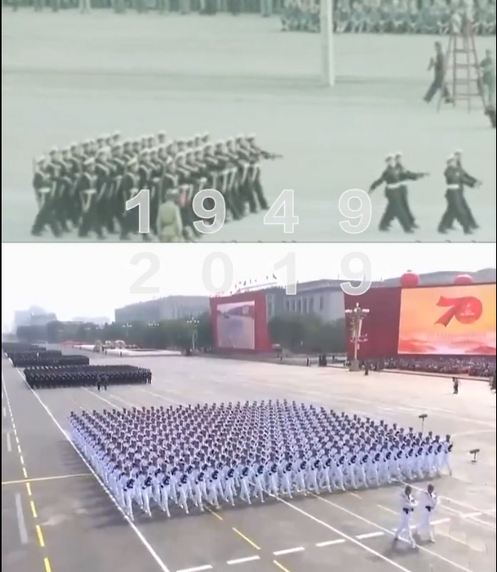 中國,從70年前的“小米加步槍”到現(xiàn)在的“縱橫萬里海疆,勇闖遠海大洋”戰(zhàn)旗方隊浩蕩而來,曾經形單影只的護旗車一去不返。