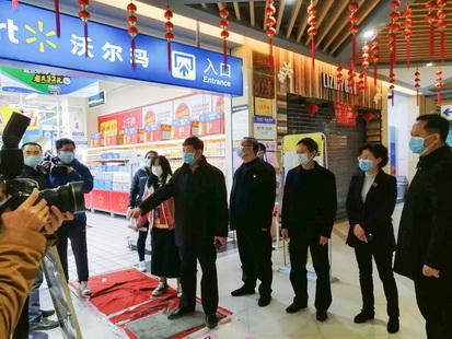 2020年3月9日,新余市市委書記蔣斌、市長猶?等一行人赴新余市高能廣場檢查沃爾瑪超市及高能廣場疫情防控情況。蔣斌書記、猶?市長實地察看了高能廣場商業(yè)經(jīng)營安全環(huán)境和疫情防控情況,并到高能廣場、沃爾瑪?shù)热巳好芗瘓鏊攸c檢查防疫工作。