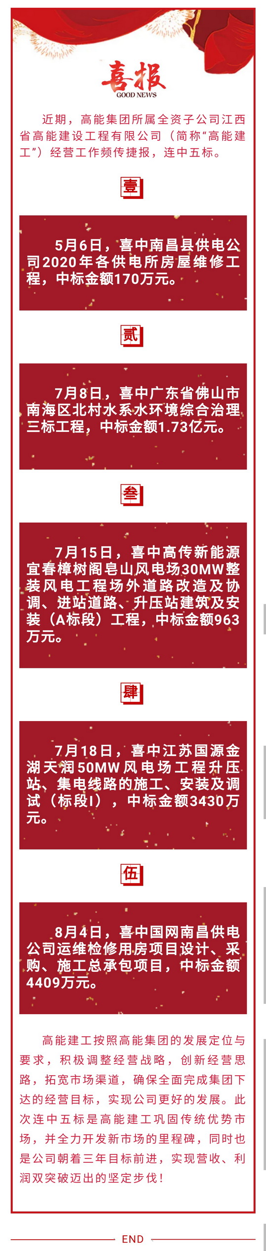 喜報(bào)!高能建工連中五標(biāo)!