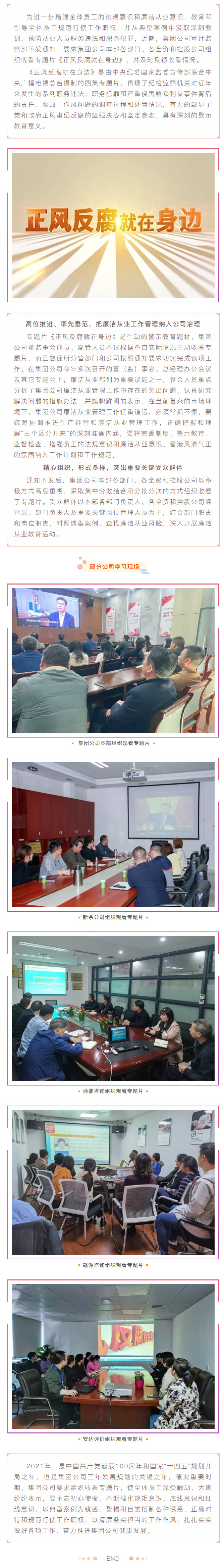 全員廉潔從業(yè)教育 助力高能集團健康發(fā)展——集團公司組織收看《正風反腐就在身邊》專題片