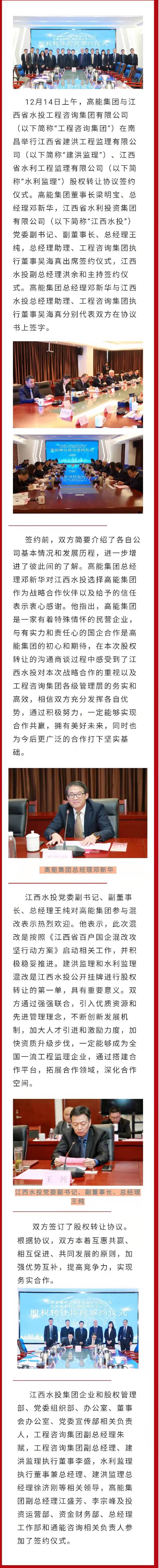 高能集團與江西省水投工程咨詢集團有限公司舉行股權轉(zhuǎn)讓協(xié)議簽約儀式