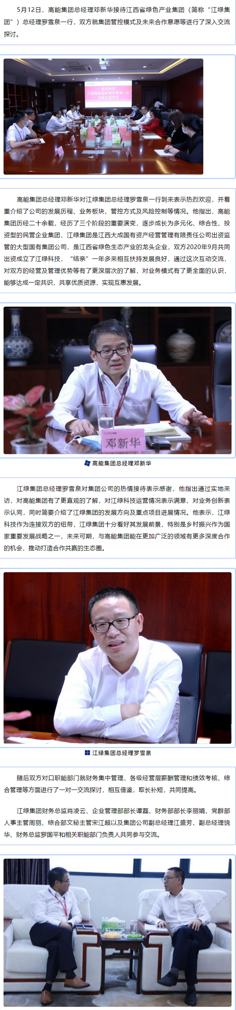 江西省綠色產(chǎn)業(yè)集團(tuán)總經(jīng)理羅雪泉一行來(lái)訪高能集團(tuán)