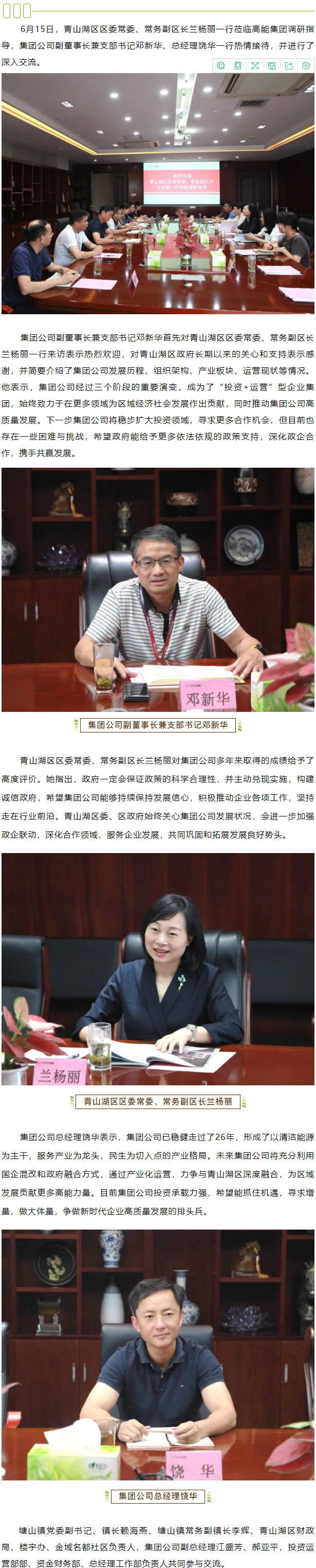 青山湖區(qū)區(qū)委常委、常務(wù)副區(qū)長(zhǎng)蘭楊麗一行蒞臨高能集團(tuán)調(diào)研指導(dǎo)