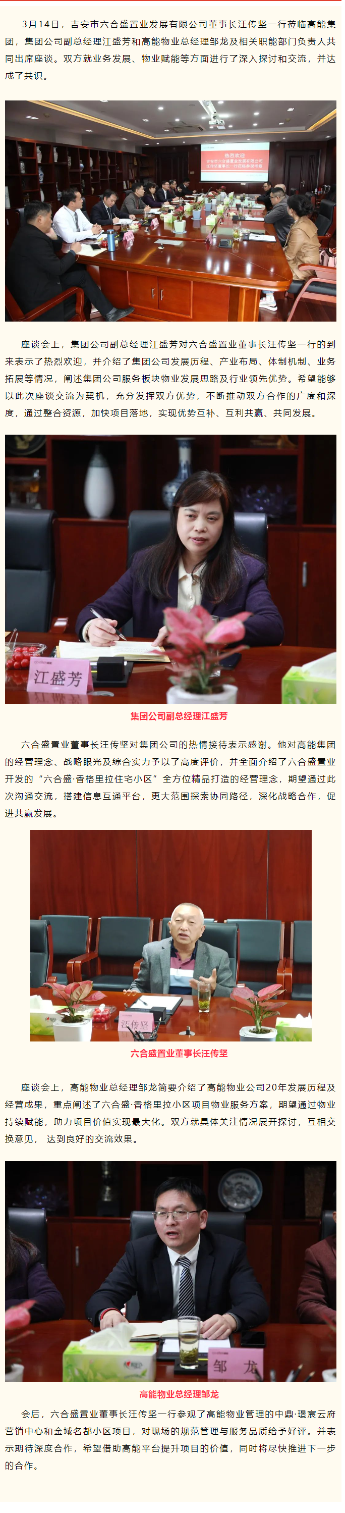 吉安市六合盛置業(yè)發(fā)展有限公司董事長(zhǎng)汪傳堅(jiān)一行蒞臨高能集團(tuán)座談交流